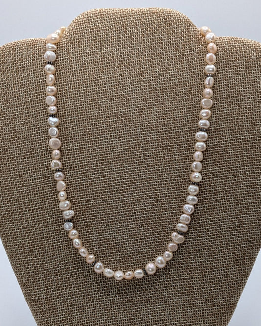 Dusty Pink Freshwater Pearl Necklace with Sterling Silver Bali Beads