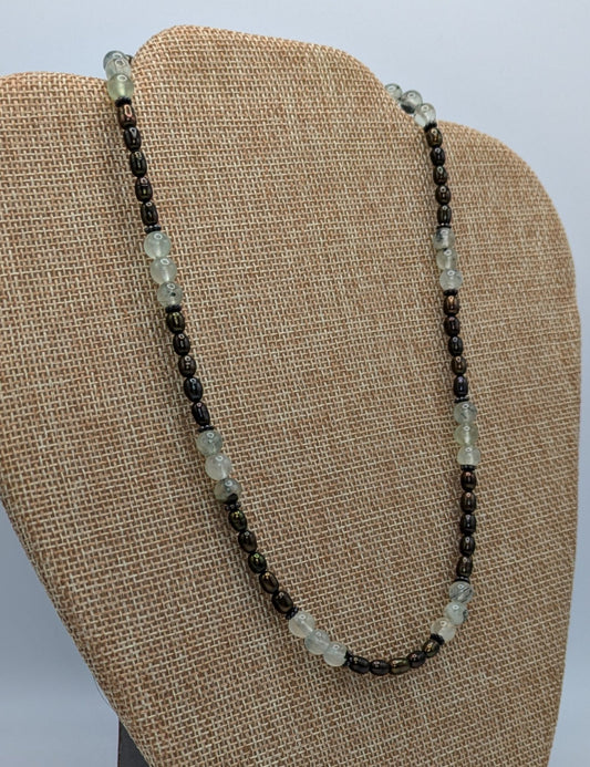 Dark Olive Green Freshwater Pearls with Green Rutilated Quartz Necklace & Sterling Silver Bali Beads