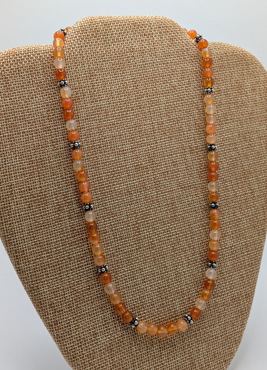 Carnelian and Champagne Freshwater Pearl Necklace with Sterling Silver Bali Beads