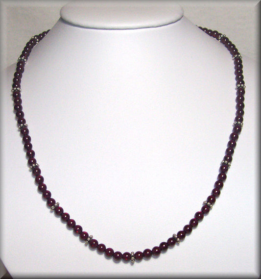 Garnet and Hematite Necklace with Sterling Silver Bali Beads