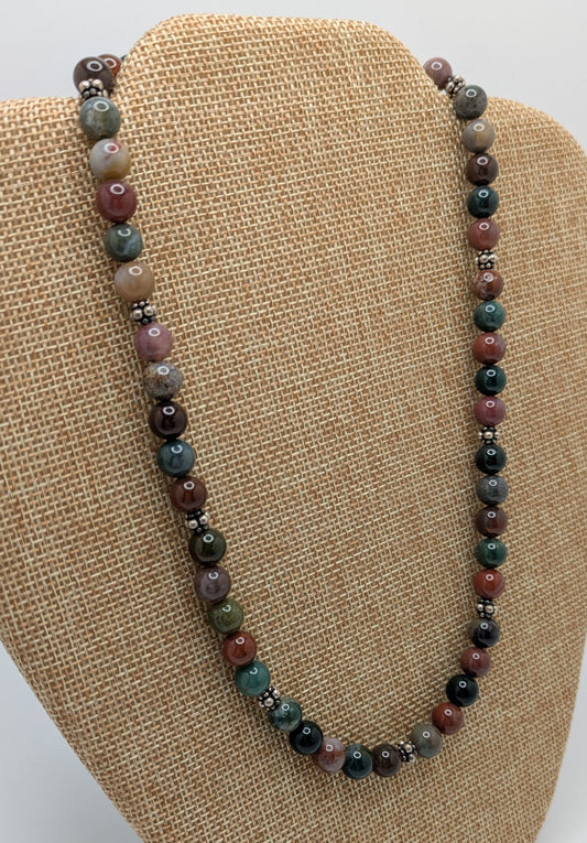 Indian Agate Necklace with Sterling Silver Bali Beads