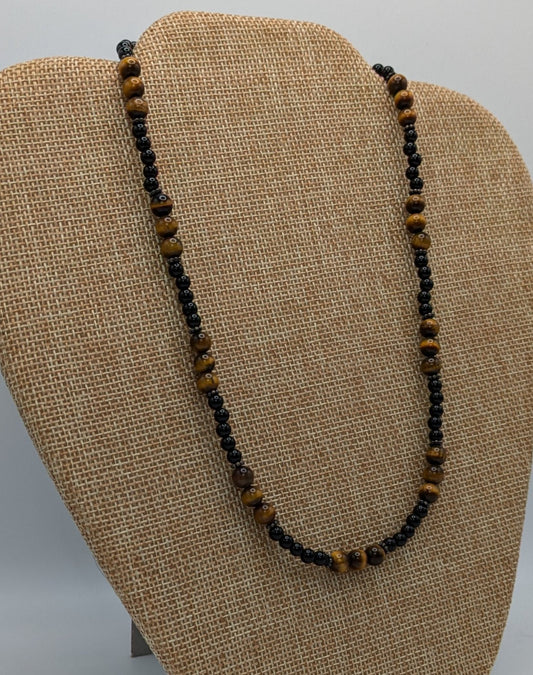 Tiger's Eye and Black Onyx Necklace with Sterling Silver Bali Beads