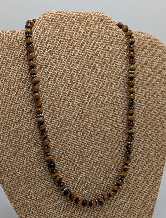 Tiger's Eye Necklace with Sterling Silver Bali Beads