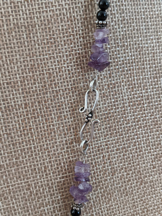Black Onyx and Amethyst Necklace with Sterling Silver Bali Beads