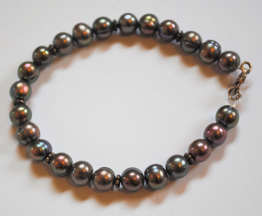 Peacock Pearl Bracelet with Sterling Silver Bali Beads