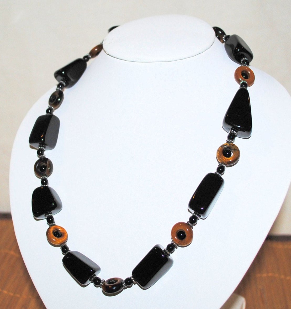 Black Onyx and Tiger's Eye Necklace with Sterling Silver Bali Beads