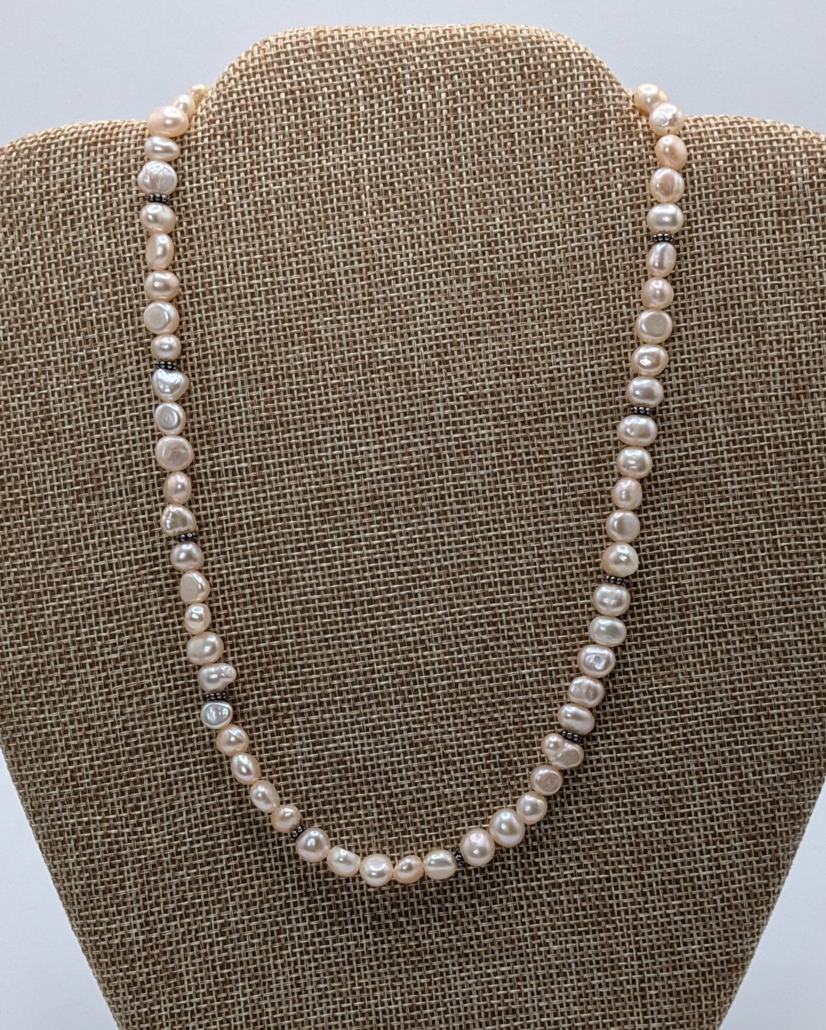 Champagne Freshwater Pearl Necklace with Sterling Silver Bali Beads