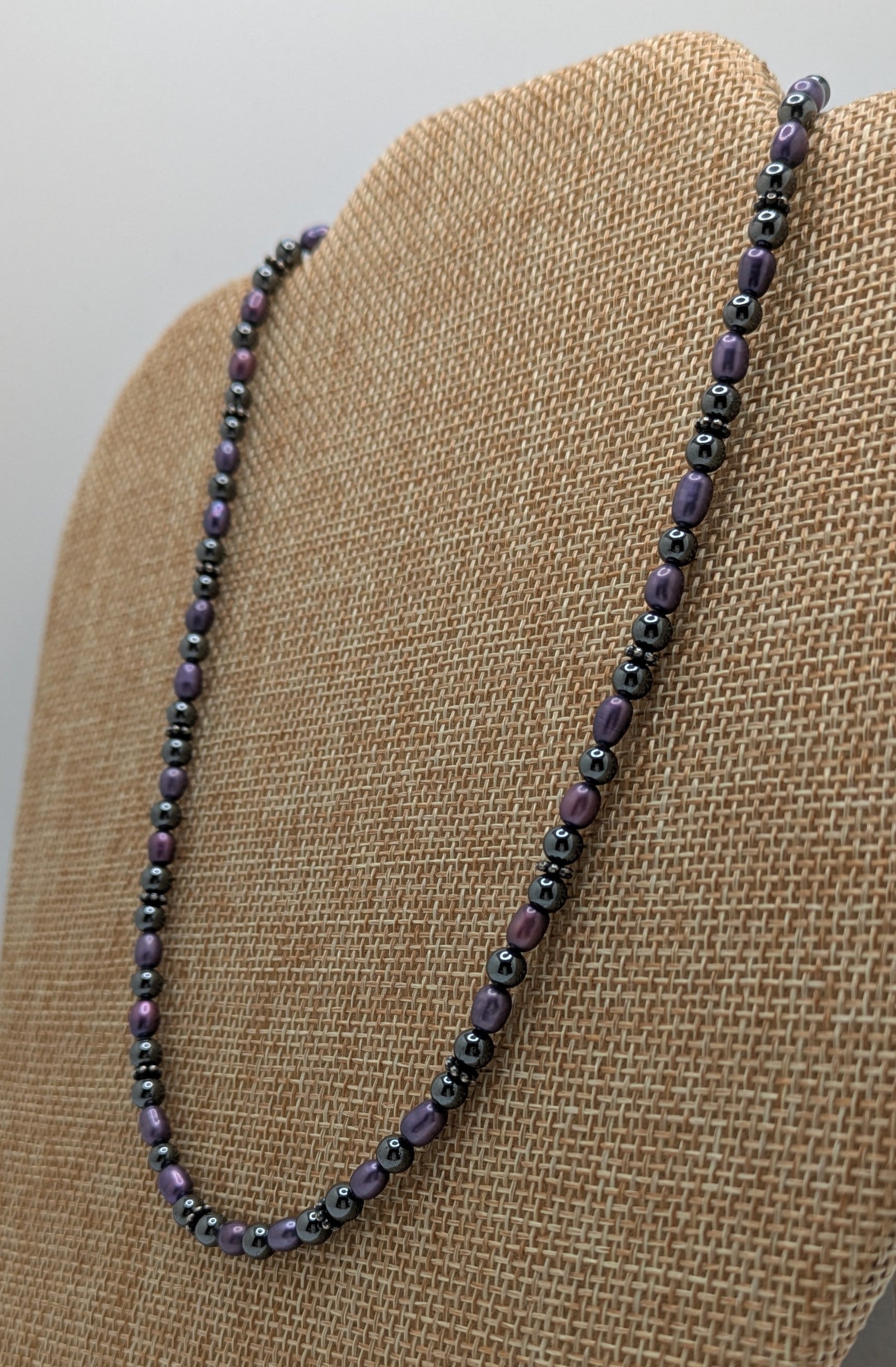 Hematite and Blue Freshwater Pearl Necklace with Sterling Silver Bail Beads