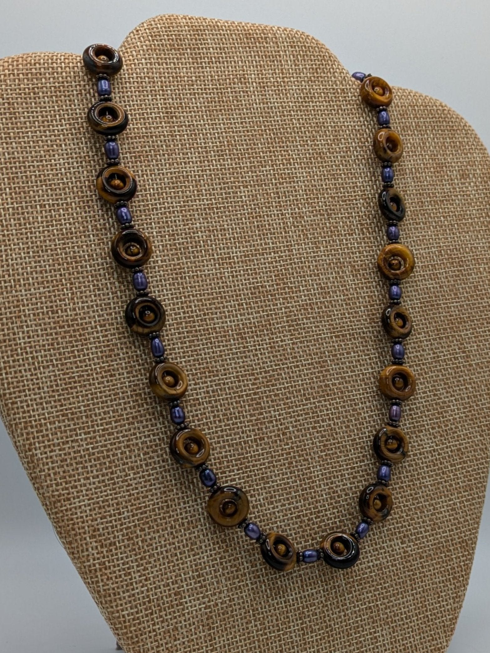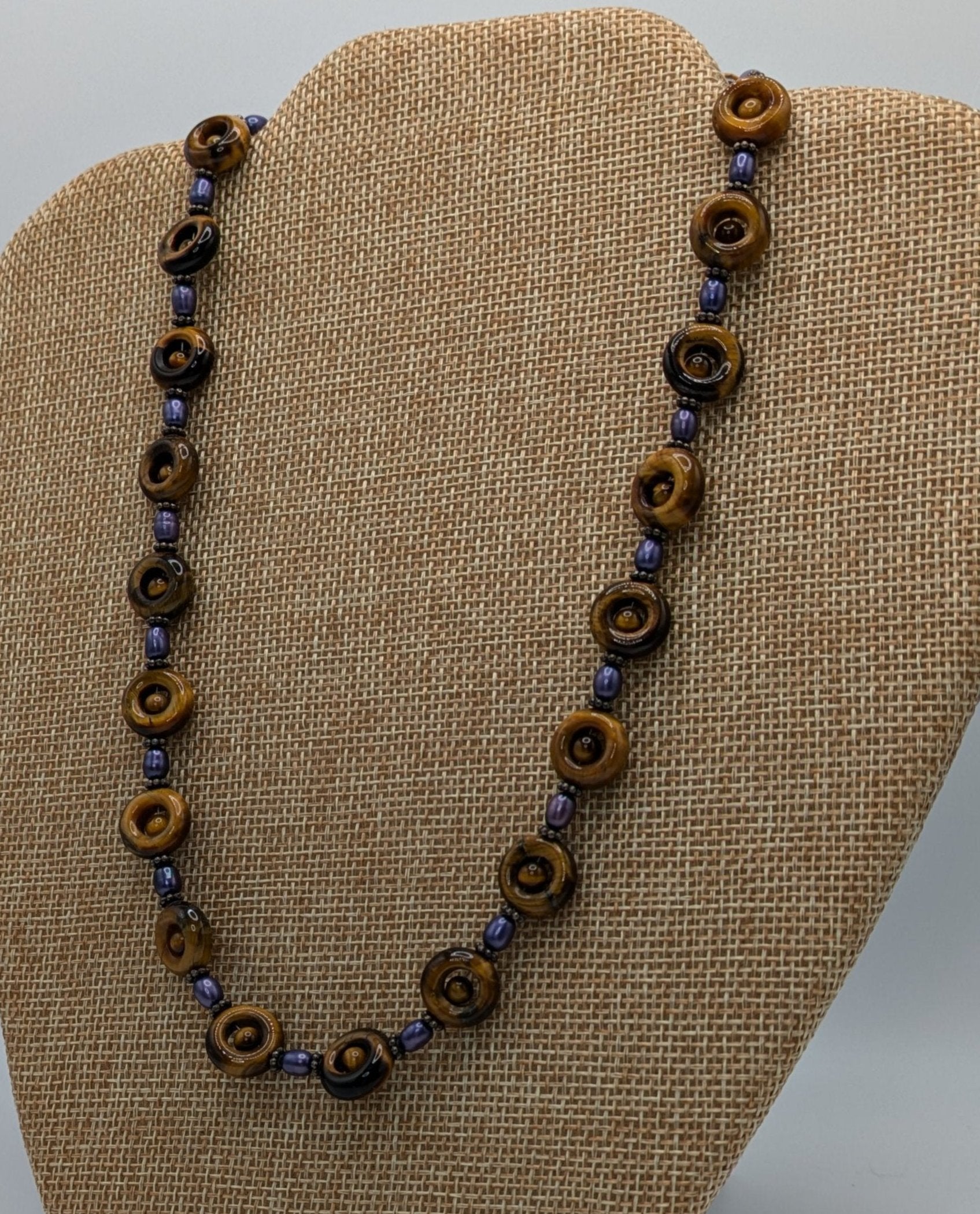 Tiger's Eye with Blue Freshwater Pearl Necklace